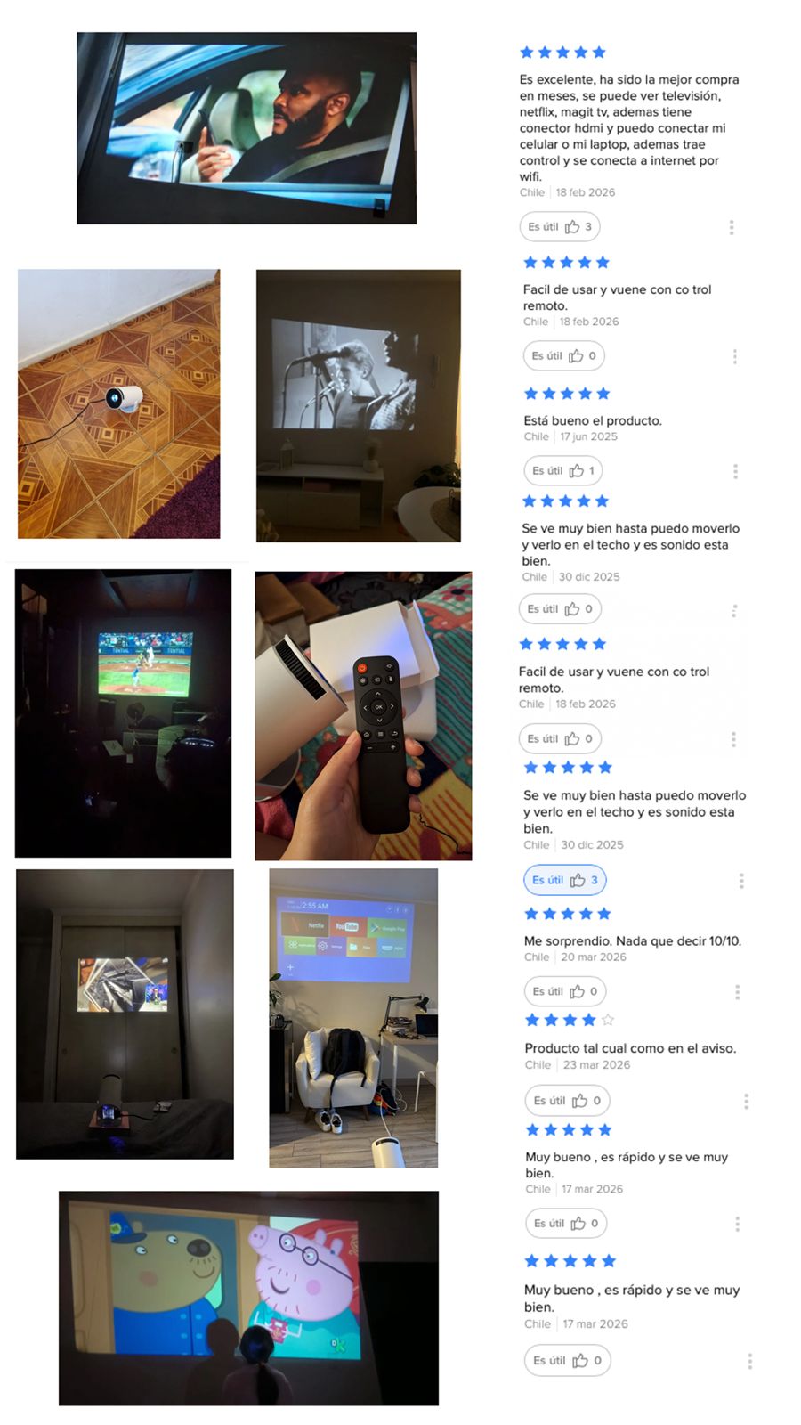 Vivo solo y quería algo para hacer más entretenidas las noches en la casa. Este proyector fue perfecto. Se instala fácil, no mete ruido y la imagen se ve mucho mejor de lo que esperaba."