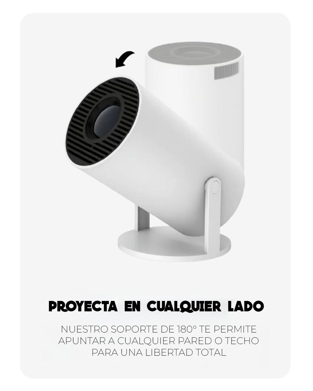 Gracias a su rotación 180°, puedes proyectar en el techo, la pared o donde quieras.